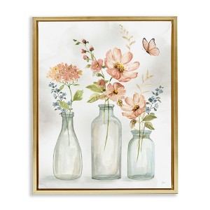 Stupell Industries Butterfly & Pink Florals Floating Frame Canvas Art, Gold, 17" x 21"