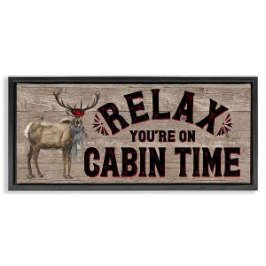 Stupell Industries Cabin Time Phrase with Deer Floating Frame Canvas Art