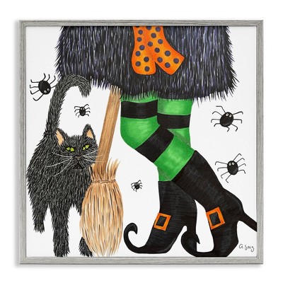 Stupell Industries Cat & Ghost Baking Pumpkin Cake Framed Giclee Art, Gray, 12" x 12"