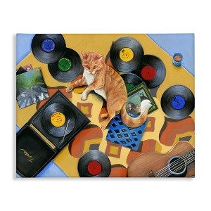 Stupell Industries Cat & Vintage Record Player Canvas Art