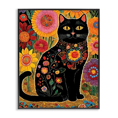 Stupell Industries Cat with Patterned Florals Framed Giclee Art