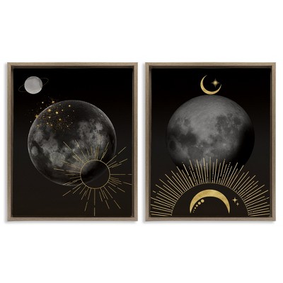 Stupell Industries Celestial Gold Sun and Moon 2pc Framed Print Under Glass Set
