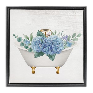 Stupell Industries Chic Bathtub with Hydrangea Blossoms Floating Frame Canvas Art