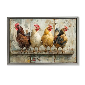 Stupell Industries Chickens In A Row Floating Frame Canvas Art, Gray, 31" x 21"