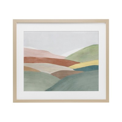 A digitally printed paper is framed with a white mat under durable PETG plastic. The bevel cut mat is made of paper pulp mat board. The wood look frame includes a pre-installed sawtooth hanger for easy hanging.