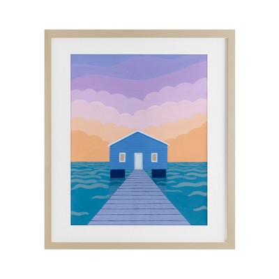 Our Framed Print Under Glass is a modern way to display art with a crisp, clean finish. A digitally printed paper is framed with a white mat under durable PETG plastic. The bevel cut mat is made of paper pulp mat board. The frame is constructed from real wood with a wrapped finish. It includes a pre-installed sawtooth hanger for easy hanging. Available in black, birch, gray and white finishes.