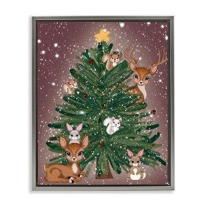 Stupell Industries Christmas Tree Fun Animals Floating Frame Canvas Art, Gray, 17" x 21"