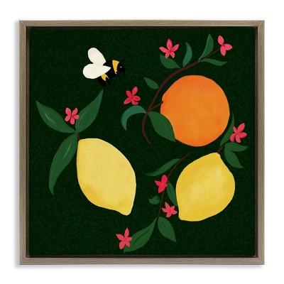 Stupell Industries Citrus & Bumble Bee Floating Frame Canvas Art, Gold, 18" x 18"