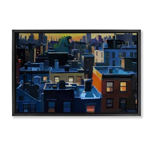 Stupell Industries Cityscape with Distant Monster Floating Frame Canvas Art