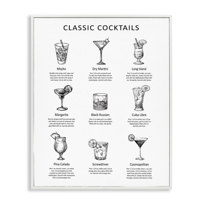 Stupell Industries Classic Cocktails Mixed Drinks Kitchen Bar Sign Chart Framed Giclee Art, Black, 16" x 20"
