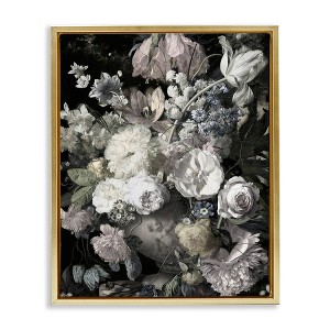Stupell Industries Classical Busy Flower Bouquet Floating Frame Canvas Art, Gold, 17" x 21"