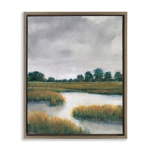 Stupell Industries Cloudy Rural Marsh Landscape Floating Frame Canvas Art, Brown, 17" x 21"