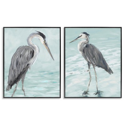 Stupell Industries Cloudy Summer Beach Shore Watercolor 2pc Framed Giclee Art Set