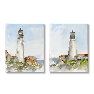 Stupell Industries Coastal Cliffside Lighthouse Study Soft Nautical Gallery Wrapped Canvas Wall Art 2pc Set, 24 x 30