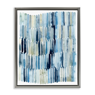 Stupell Industries Coastal Tile Abstract Soft Blue Beige Shapes Floating Frame Canvas Art