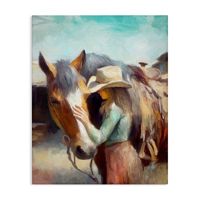 - Artwork Relates To: Painting, Person, Woman, Animal, Horse, Mammal, Halter, Equestrian, Southwestern, Cowgirl, Cowboy