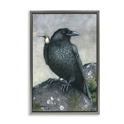 Stupell Industries Crow & Hummingbird Perched Framed Giclee Art