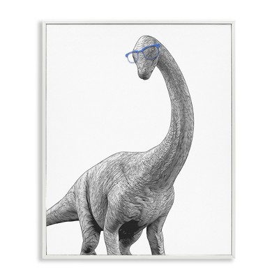 Stupell Industries Cute Monochrome Longneck Dinosaur Blue Glasses Design Framed Giclee Art, Gray, 16" x 20"