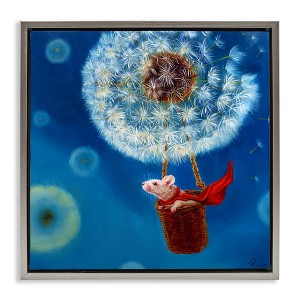 Stupell Industries Dandelion Hot Air Balloon Mouse Floating Frame Canvas Art, Gray, 25" x 25"