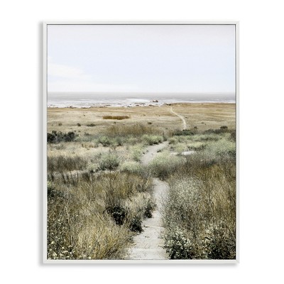 Stupell Industries Distant Shoreline Grassy Beach Path Cloudy Horizon Framed Giclee Art, Gray, 16" x 20"