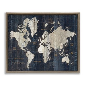 Stupell Industries Distressed Antique World Map Floating Frame Canvas Art
