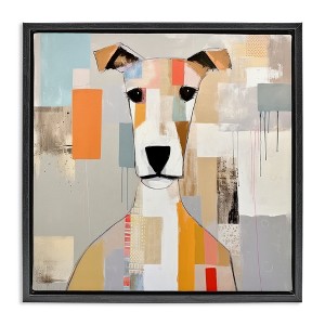 Stupell Industries Dog Face Abstract Collage Floating Frame Canvas Art