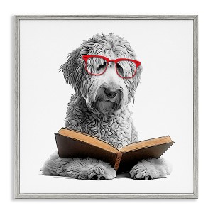 Stupell Industries Dog Reading Book Framed Giclee Art