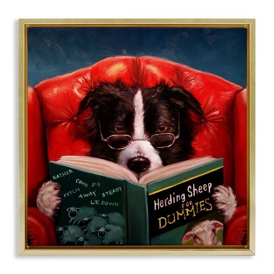 Stupell Industries Dog with Bird Watching Book Floating Frame Canvas Art