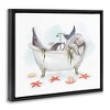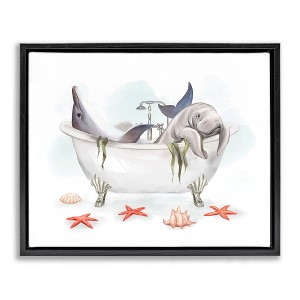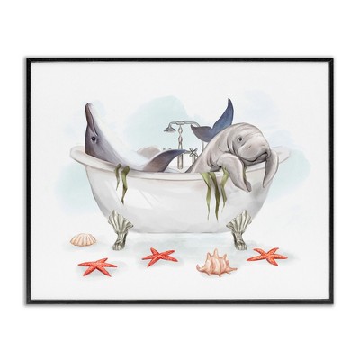 Stupell Industries Dolphin & Manatee Bathtub Floating Frame Canvas Art