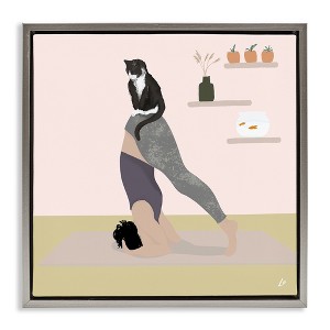 Stupell Industries Downward Cat Yoga Pose Floating Frame Canvas Art, Gray, 25" x 25"