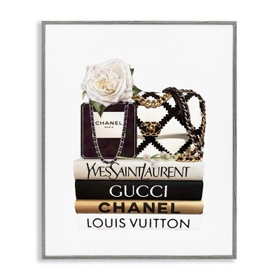 Stupell Industries Elegant Glam Fashion Floral Bag on Bookstack, 30" x 24"
