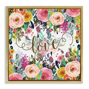 Stupell Industries Elegant Love Floral Pattern Floating Frame Canvas Art, Gold, 25" x 25"