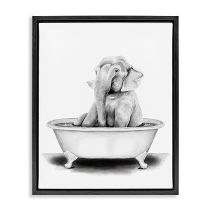 Stupell Industries Elephant In Tub Funny Floating Frame Canvas Art