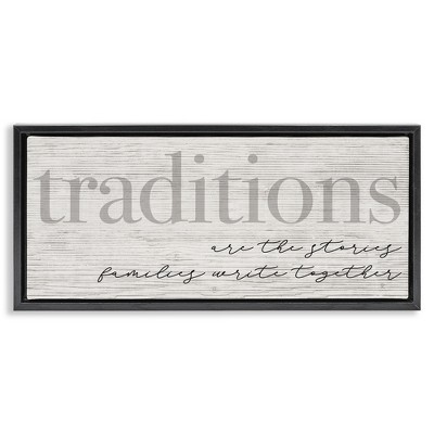 Stupell Industries Family Traditions Heartfelt Phrase Floating Frame Canvas Art, Brown, 31" x 14"