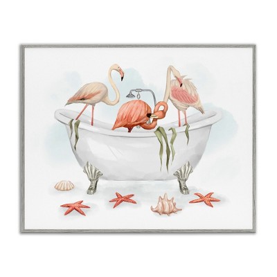 Stupell Industries Flamingo Trio in Nautical Tub Seaside Bathroom, 14" x 11"