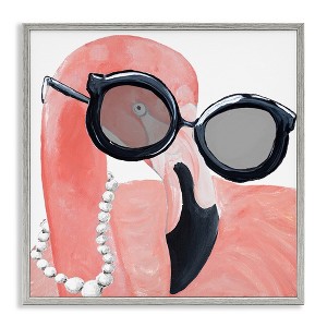 Stupell Industries Flamingo with Glam Pearls Framed Giclee Art, Gray, 17" x 17"