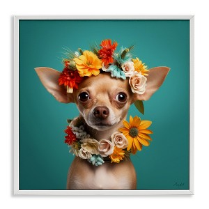 Stupell Industries Floral Chihuahua Portrait Framed Giclee Art, White, 24" x 24"