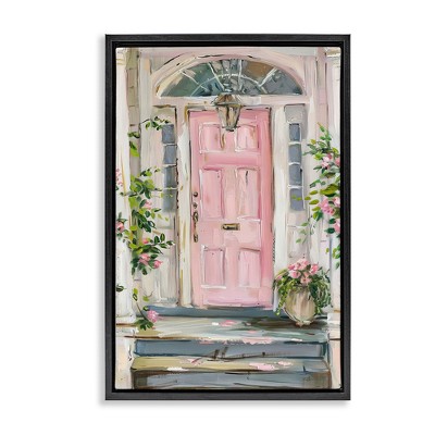 Stupell Industries Floral Fountain Courtyard Floating Frame Canvas Art, Gold, 25" x 17"