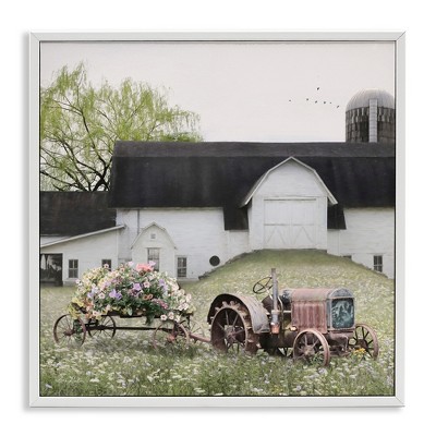 Stupell Industries Floral Tractor in Farmhouse Field Floating Frame Canvas Art