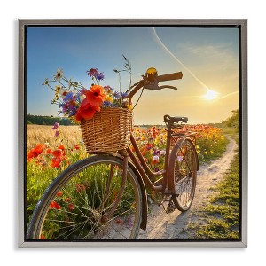 Stupell Industries Flower Stop Bicycle Floating Frame Canvas Art, Gray, 18" x 18"