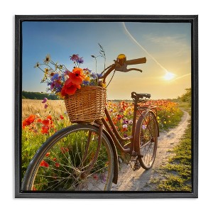Stupell Industries Flower Stop Bicycle Floating Frame Canvas Art, Black, 18" x 18"