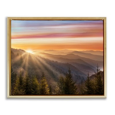 Stupell Industries Foggy Lake Forest Landscape Reflection Floating Frame Canvas Art, Gold, 21" x 17"
