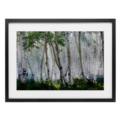 Our Framed Print Under Glass is a modern way to display art with a crisp, clean finish. A digitally printed paper is framed with a white mat under durable PETG plastic. The bevel cut mat is made of paper pulp mat board. The frame is constructed from real wood with a wrapped finish. It includes a pre-installed sawtooth hanger for easy hanging. Available in black, birch, gray and white finishes.