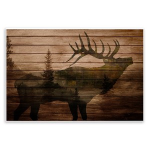 Stupell Industries Forest Elk Silhouette Rustic Plank Pattern Tree Landscape Wall Plaque Art, 19" x 13"