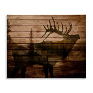 Stupell Industries Forest Elk Silhouette Rustic Plank Pattern Tree Landscape Canvas Art, 20" x 16"