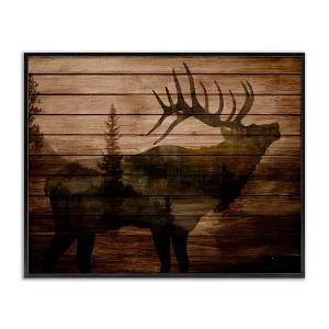 Stupell Industries Forest Elk Silhouette Rustic Plank Pattern Tree Landscape Framed Giclee Art, Black, 20" x 16"