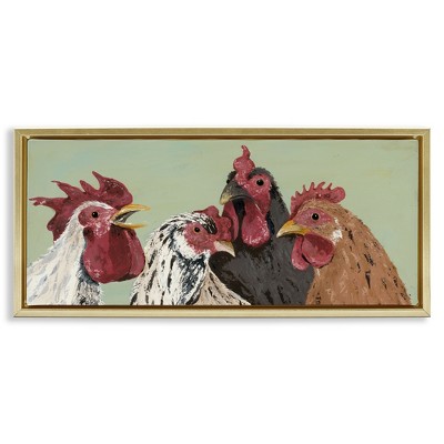 Stupell Industries Four Roosters over Green Floating Frame Canvas Art, Brown, 25" x 11"