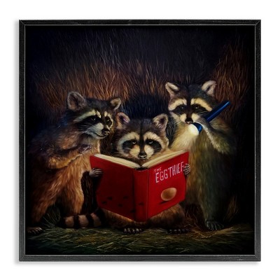 Stupell Industries Fun Raccoon Trio Reading Book Canvas Art