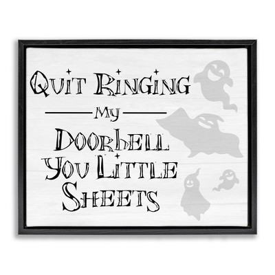 Stupell Industries Funny Halloween Typography Phrase Smiling Ghosts Silhouettes Floating Frame Canvas Art, Gray, 31" x 25"