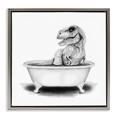 Stupell Industries Funny T-Rex Bathtub Washroom Canvas Art